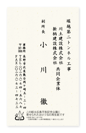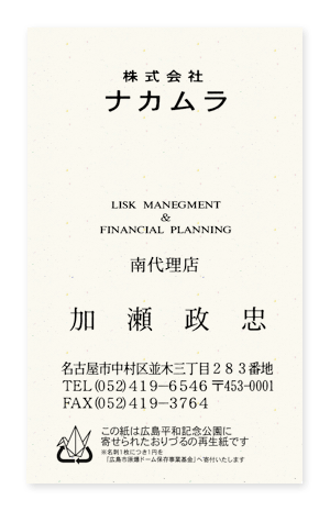 デザインをクリックすると拡大してご覧になれます。 またデザインサンプルのデザインで名刺を作成することも可能です。左のボタンよりご注文ください。
